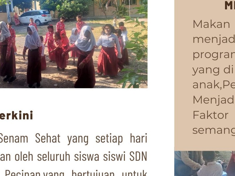 Senam Setiap pagi yang dilaksanakan oleh semua siswa dan di pandu langsung oleh Para guru,hal ini tidak hanya untuk menambah imunitas kesehatan kepada siswa tetapi juga untuk belajar lebih semangat didalam kelas,MBG makan Bergizi adalah program pemerintah untuk semua siswa siswi yang merupakan program yang disukai anak anak.